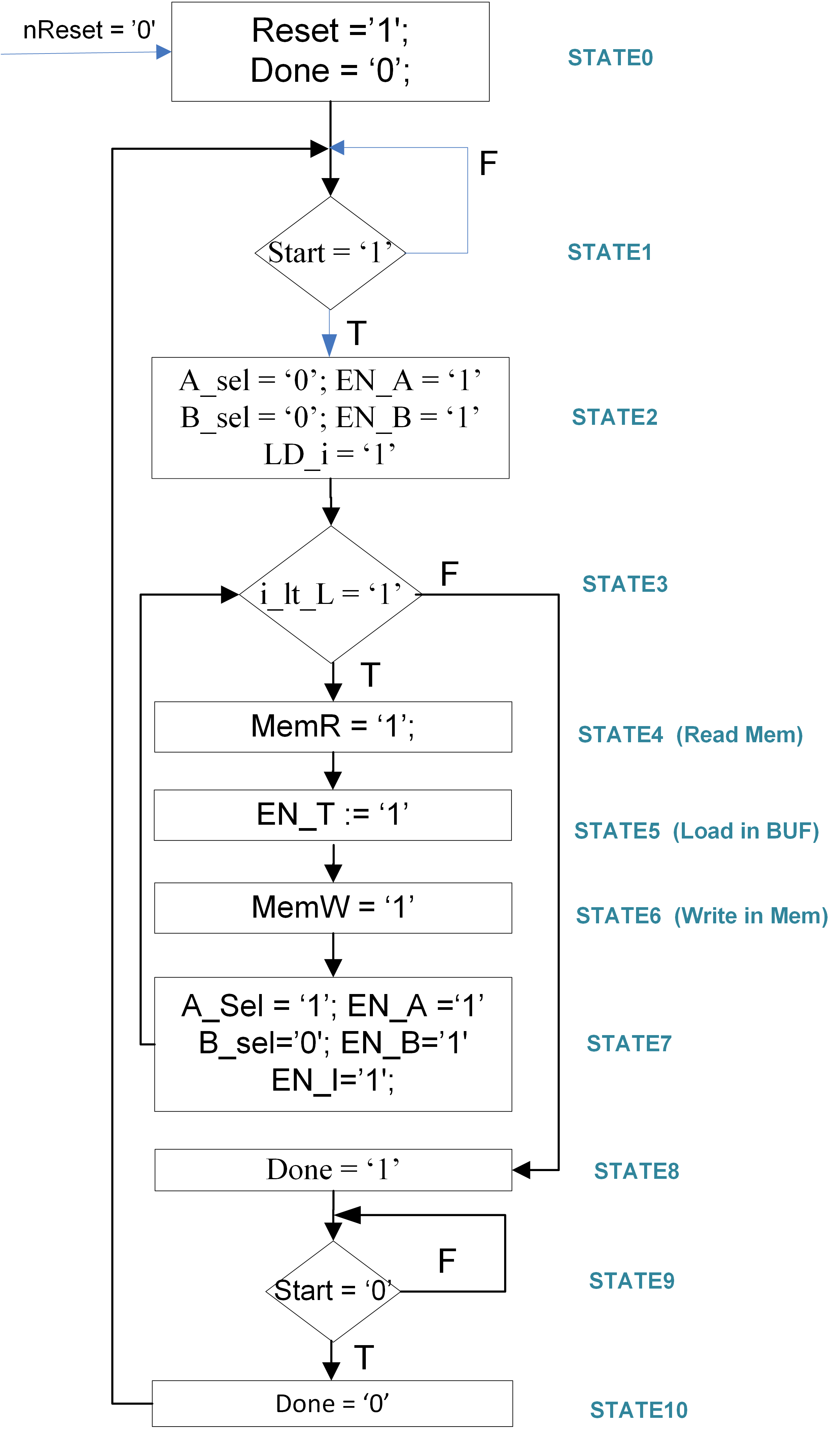 Hoạt động chức năng của đơn vị điều khiển lõi DMAC được mô tả bằng lưu đồi máy trạng thái như chỉ ra trong Hình 9.