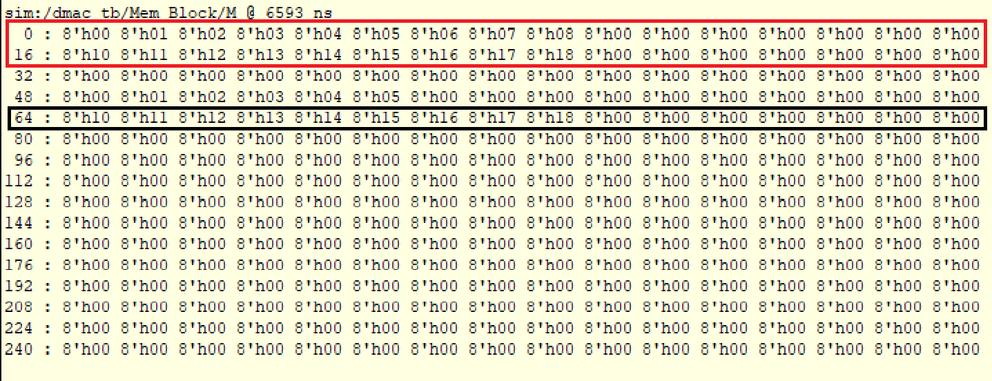 Nội dung của bộ nhớ lấy mẫu tại thời điểm 6593 ns, sau lần DMA thứ hai