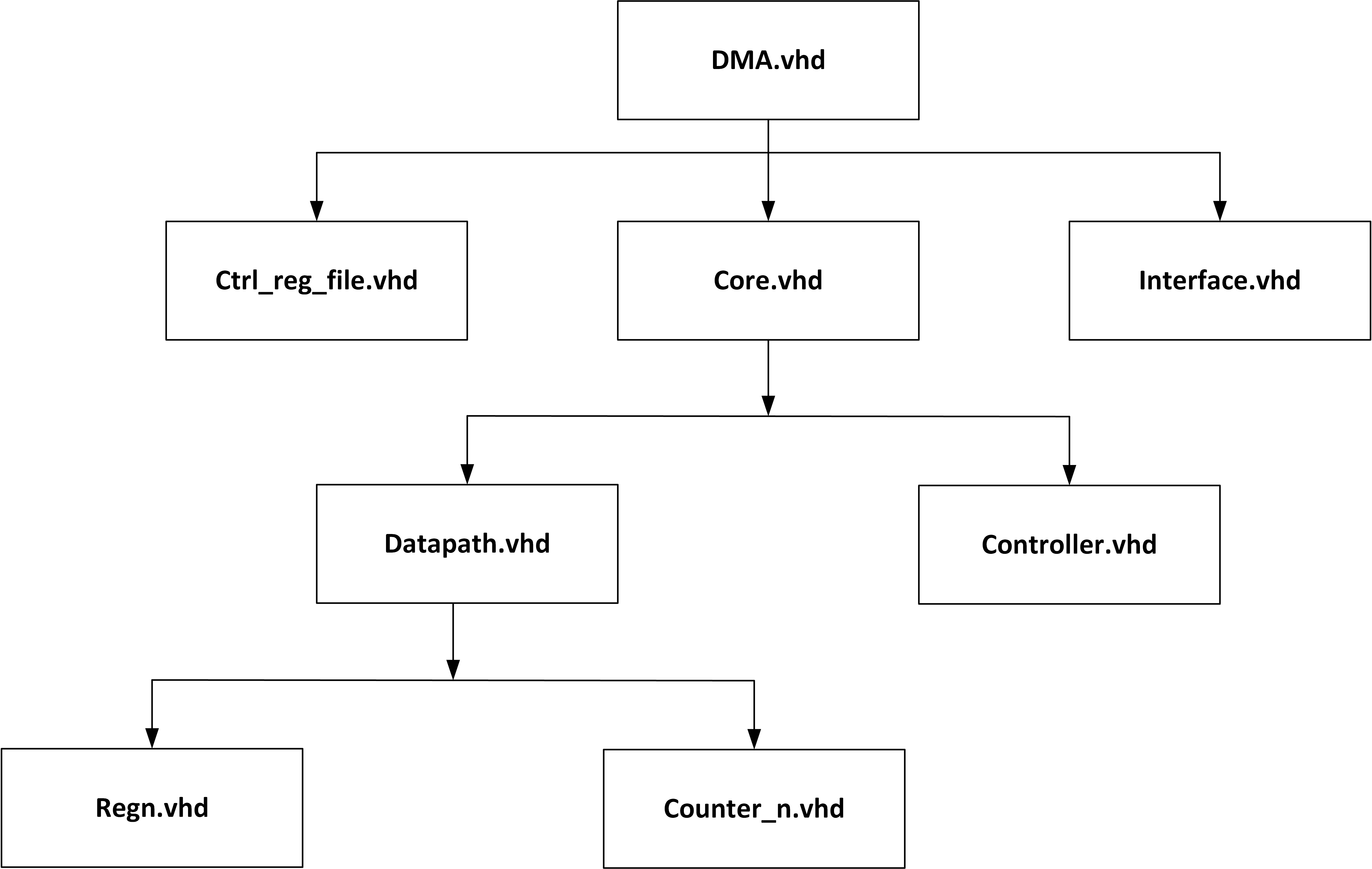 Tổ chức dạng cây của các file mã nguồn VHDL của bộ DMAC