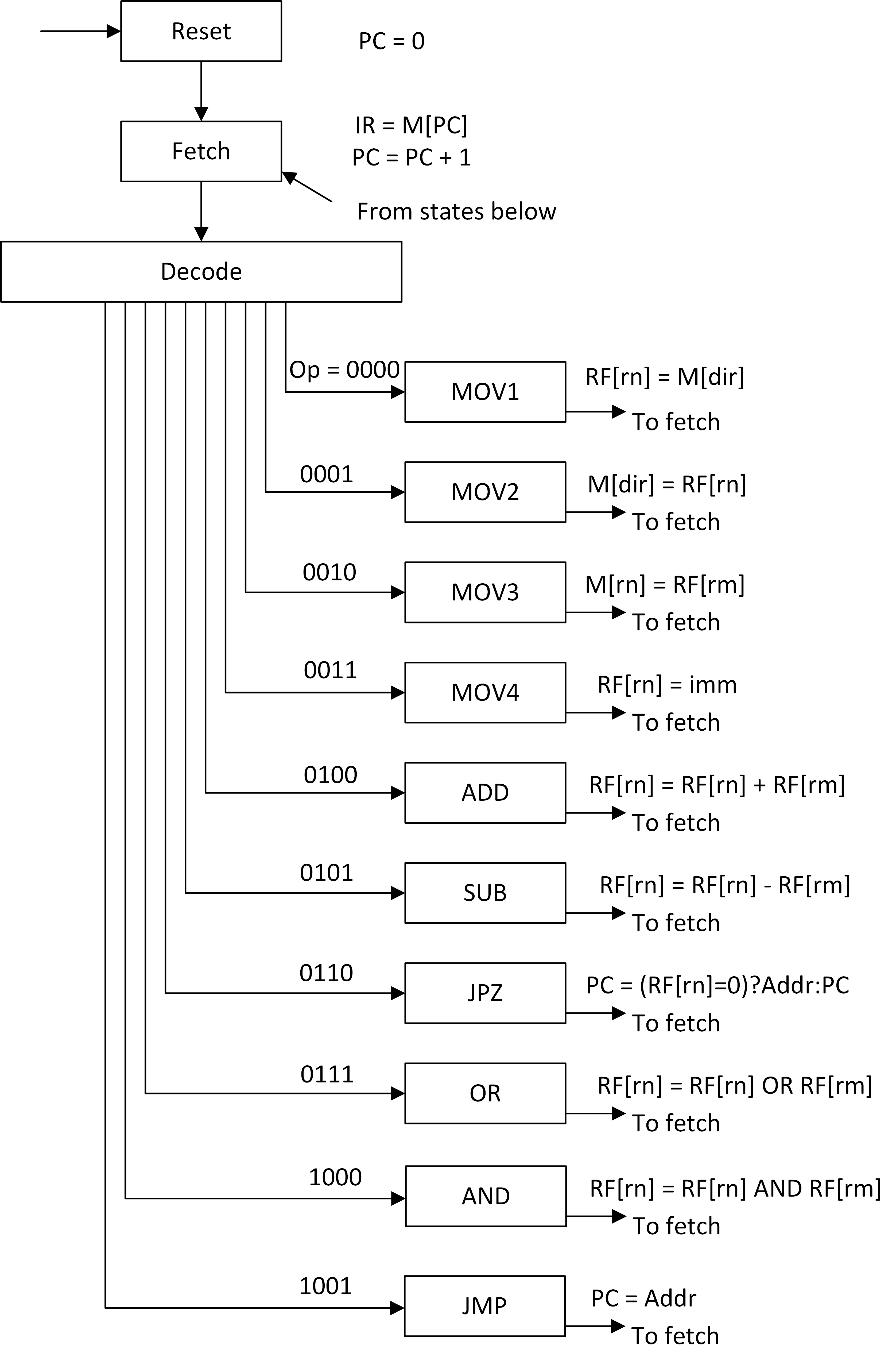 | 7 | JZ Rn, Addr | 0110 | Rn | Addr | PC = Addr only if Rn = 0 | |