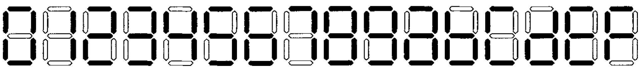 Hình 2‑1. Hiển thị LED 7-đoạn và các mẫu hiển thị các số thập lục phân