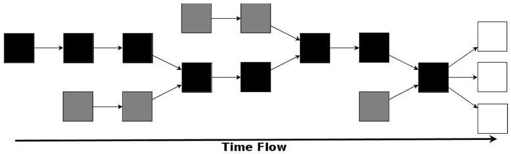Như chỉ ra trong Hình 1, nhiều chuỗi có thể tồn tại cùng một lúc trong mạng, tuy nhiên những chuỗi ngắn hơn sẽ bị loại bỏ khi thời gian trôi qua và được thay thế bằng chuỗi dài nhất. Chuỗi dài nhất là chuỗi đòi hỏi khối lượng công việc lớn được tạo ra, không nhất thiết là chuỗi có nhiều khối hơn. Các thợ mỏ cố gắng kéo dài chuỗi dài nhất bằng cách tìm một khối tiếp theo cho nó (các khối màu trắng trong Hình 1). Khối tiếp theo được gắn vào chuỗi dài nhất và được những người tham gia khác chấp nhận khi hàm băm của nó có một số thuộc tính rất khó xảy ra như sẽ thảo luận ở Phần 3. Khối được đính kèm bao gồm một giao dịch đặc biệt tạo ra Bitcoin mới thưởng cho người khai thác đã “giải quyết” khối đó. Lưu ý rằng một số khối tiếp theo được thử cùng lúc bởi các thợ đào khác nhau trên mạng. Nhưng chỉ người đầu tiên giải được một khối được thưởng.